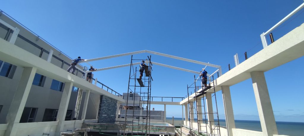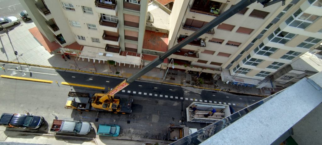 Para esta obra se utilizo una grúa para poder lograr subir todo lo necesario para poder llevarla adelante ?️