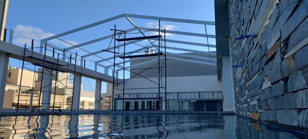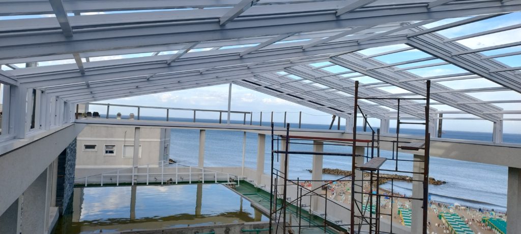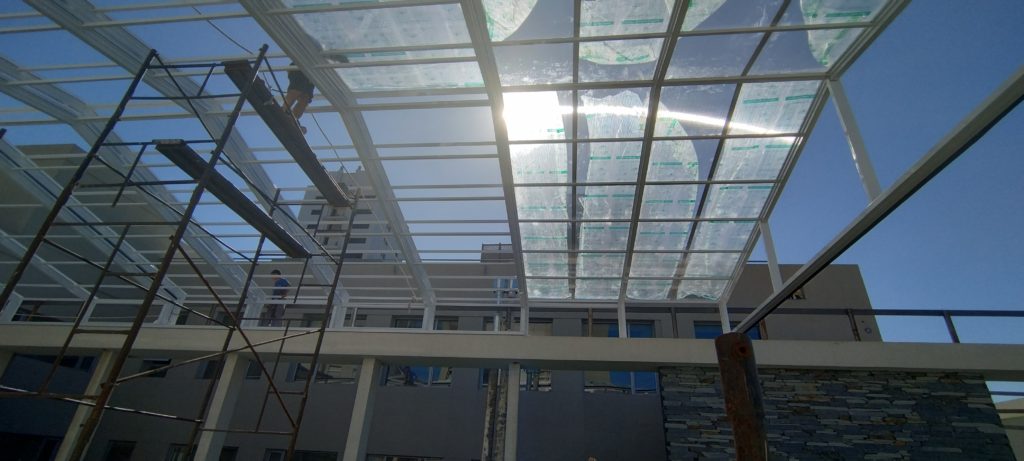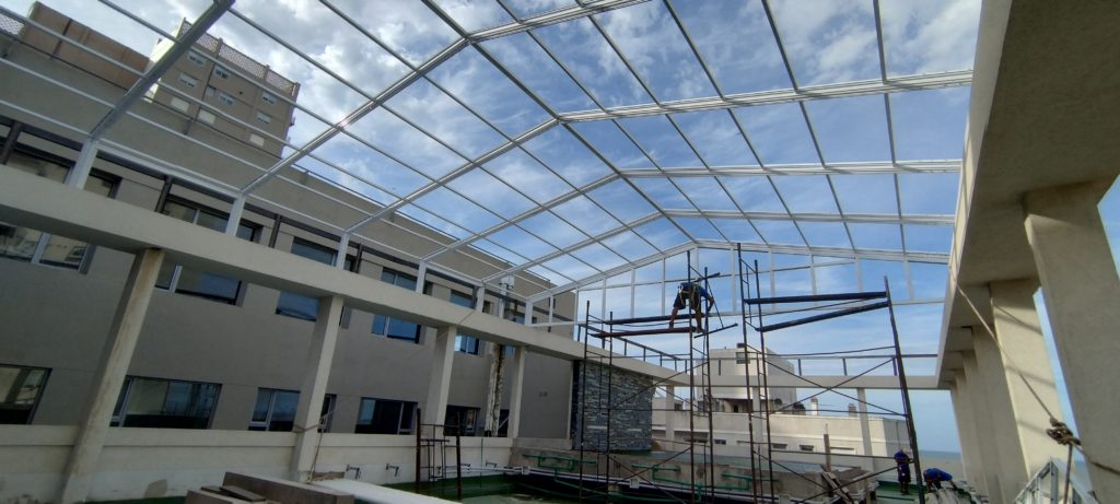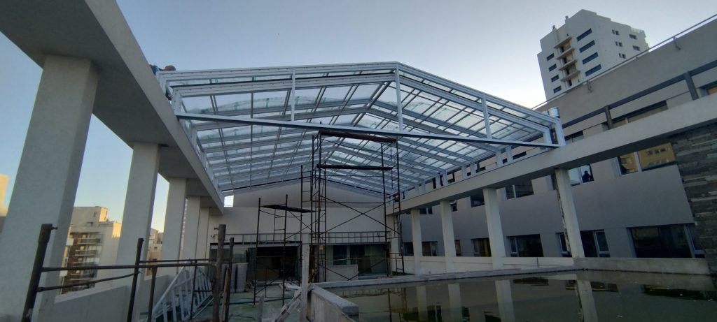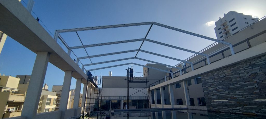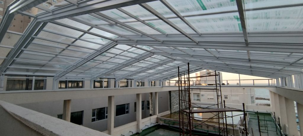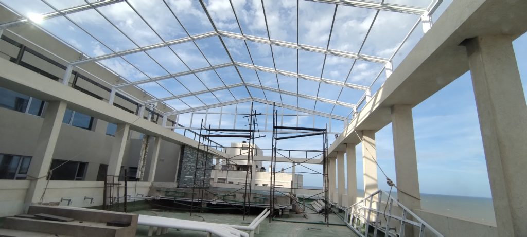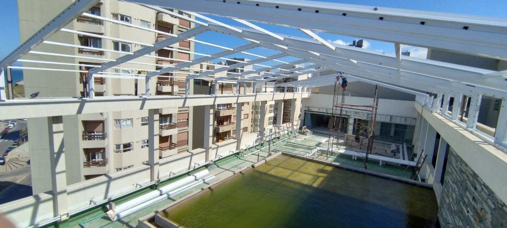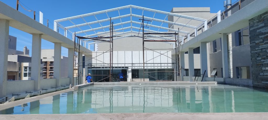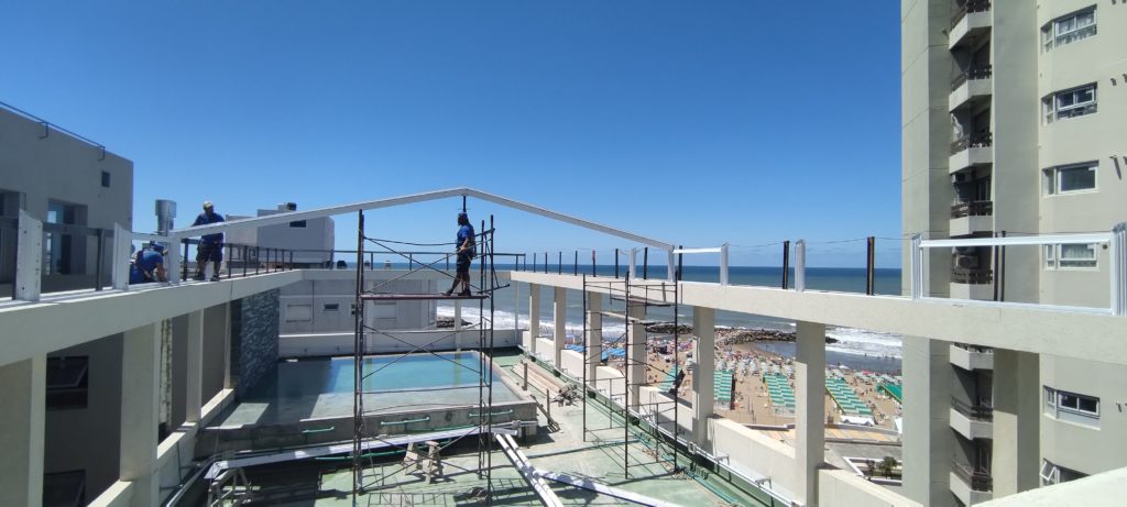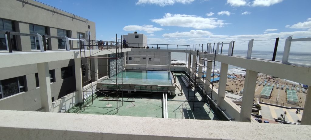?Realizado sobre viga perimetral en una terraza accesible con pileta.